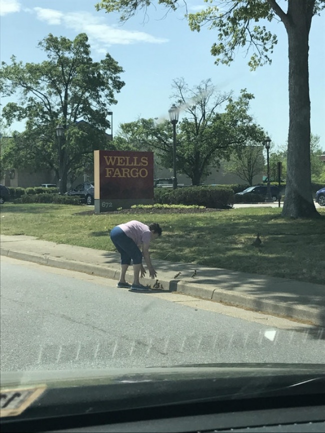 Ця жінка перекрила дорожній рух, щоб допомогти качиної сім'ї безпечно перейти на іншу сторону