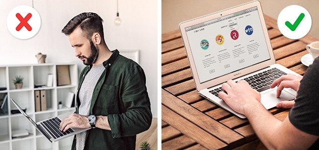 Хоча назва ноутбука походить від слова «коліна» (англ. lap — коліна, laptop — ноутбук), тримати його на них не варто. Це може блокувати вентиляційні отвори і призводити до перегріву.