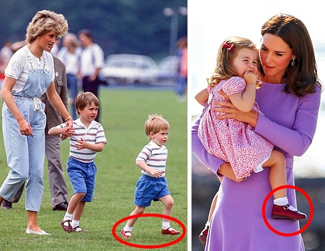 Червоні сандалії Шарлотти - це ті ж самі сандалі, які носив її дядько, принц Гаррі, в тому ж віці понад 30 років тому. І це не перший випадок передачі одягу "у спадок" - королівська родина любить давати друге життя старим речам.