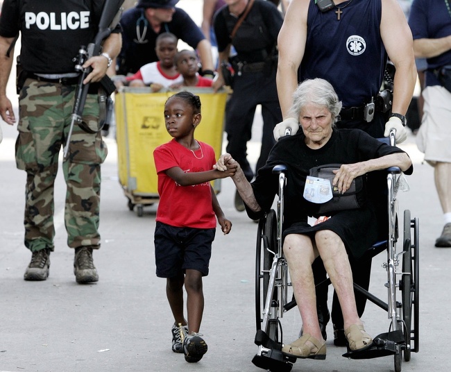 Після урагану "Катріна" жертвам стихії довелося кілька днів чекати евакуації. Але ця дівчинка, яка пережила катастрофу і довгі дні очікування, не забуває надавати допомогу іншим - хоча б заспокійливим жестом.