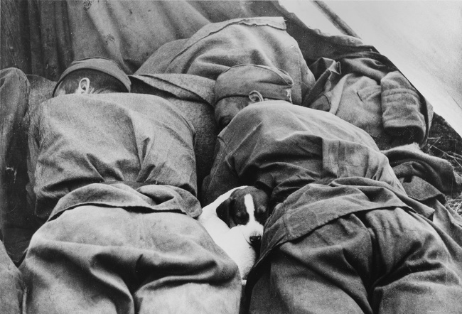 Це фото радянських солдатів зроблено в 1942 році: недовгі хвилини відпочинку в компанії вихованця.