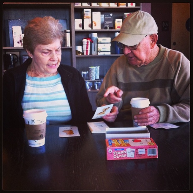 "Я побачив цю пару в Starbucks, де вчив Джон Лінду алфавітом. Він розповів, що вона втратила пам'ять і заново вчиться читати. Терпіння, любов і розуміння як вони є".