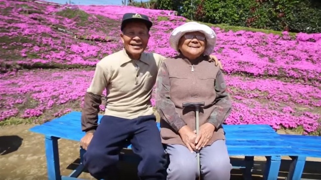 Подружжя Курокі (Kuroki) з Японії прожила більше 30 років на фермі, займаючись господарством. Вони виростили двох дітей і мріяли вийти на пенсію і подорожувати. Але одного разу жінка раптово втратила зір, і їй довелося стати самітницею. Намагаючись її підбадьорити, чоловік 2 роки висаджував біля хати квіти. Адже, щоб радіти квітам, не обов'язково їх бачити — можна відчувати запах! Величезний квітковий килим тепер привертає до будинку подружжя тисячі відвідувачів, а самі Курокі часто сидять у дворі зі щасливою посмішкою.