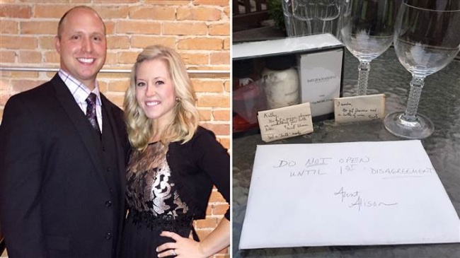 Подарунок з написом «Не відкривати до першої сварки» отримали Кеті і Брендон на весілля. Пара припустила, що в коробці щось на зразок секрету з порятунку шлюбу, адже сюрприз зробила двоюрідна бабуся нареченої, яка прожила з чоловіком майже 50 років. Цілих 9 років родина зберігала подарунок, тому що дурні розбіжності не здавалися їм поважною причиною, щоб відкривати коробку.