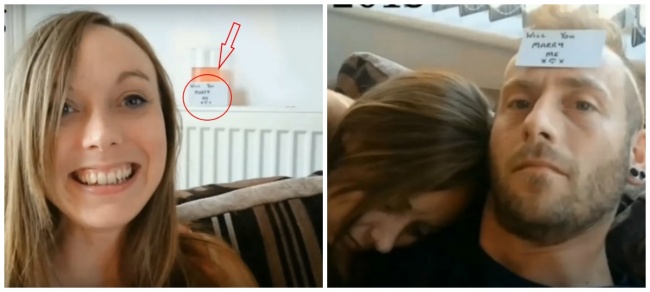 148 разів Райан Сміт (Ryan Smith) освідчився своїй дівчині Клер, але вона про це навіть не здогадувалася. Більше півроку він фотографував кохану на тлі написів «Виходь за мене». Записки він прикріплював в самих різних місцях: на телевізор, стіну, навіть на власний лоб. Дивно, але Вона їх не помічала, а отримані фото Райан їй не показував. Коли фотографій набралося 147 штук, хлопець змонтував з них романтичне відео. А покликав кохану дівчину заміж старомодним способом: встав на одне коліно і подарував кільце. Вона сказала «так»!
