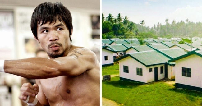 Коли-то Менні Пакьяо був звичайним філіппінським хлопчика з бідної сім'ї, але тепер він єдиний у світі боксер, який завоював світову першість у 8 вагових категоріях. На перший же великий гонорар він побудував будинки для жителів свого рідного селища Танго. Сьогодні на його гроші зведена вже тисяча будинків.
