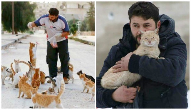 Ала Джаліл (Alaa Jaleel) з Алеппо щодня ризикував своїм життям, щоб забезпечити нужденних їжею і дахом. А коли люди покинули місто, він залишився, щоб піклуватися про їхніх домашніх вихованців. У нього більше ста кішок, у тому числі і кошеня, якого залишила йому, їдучи, одна маленька дівчинка. «Я сказав, що буду піклуватися про нього, поки вона не повернеться», — розповідає Ала.