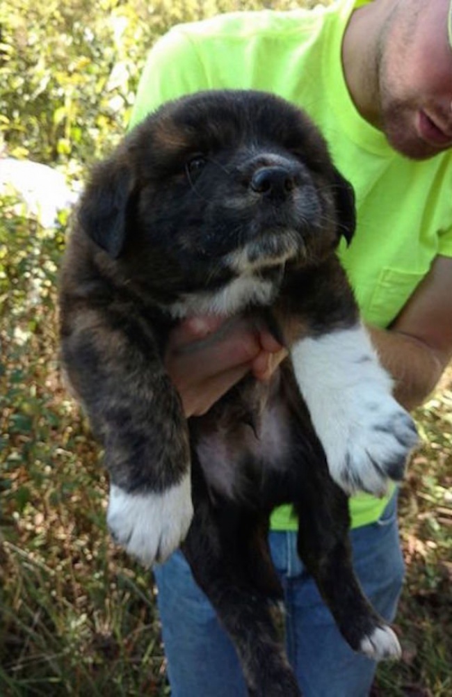 Собака виглядала виснаженою. Чоловіки нагодували її та дали напитися. Побачивши, що у неї тече молоко, вони зрозуміли: у собаки зовсім недавно народилися цуценята і вони повинні бути десь поблизу. Собака, так і не переступившая поріг будинку, і правда повела хлопців у ліс — до ями, у якій було заховано семеро цуценят.