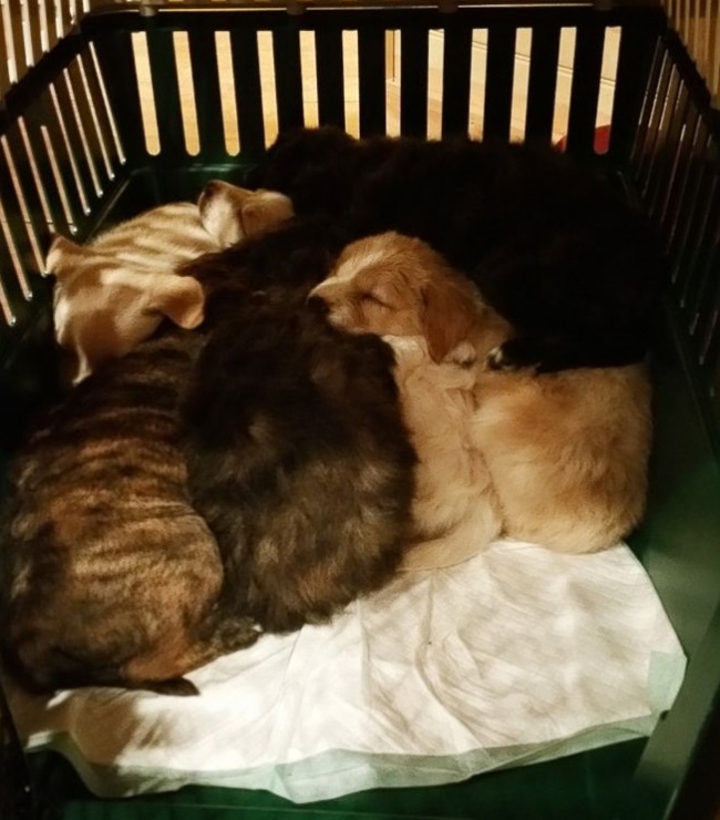 Чоловіка забрали цуценят в будинок, де відмили їх від бліх і бруду. У підсумку весь запас грошей «на пиво» для парубочого пішов на корм та догляд за тваринами. А в кінці свого відпустки чоловіки просто не могли не взяти малюків і маму до себе додому: кожен прихистив по одному цуценяті.