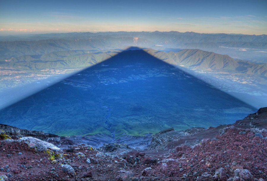 Тінь від вулкана Фудзіяма, що досягає 24 км в довжину