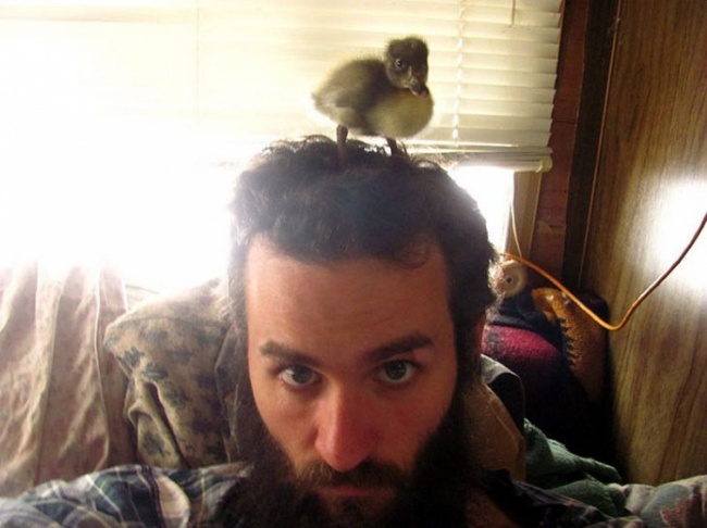 Чоловік врятував життя крихітному каченя, выходив його у власній бороді. Пухнастий малюк виріс у велику вдячну качку.