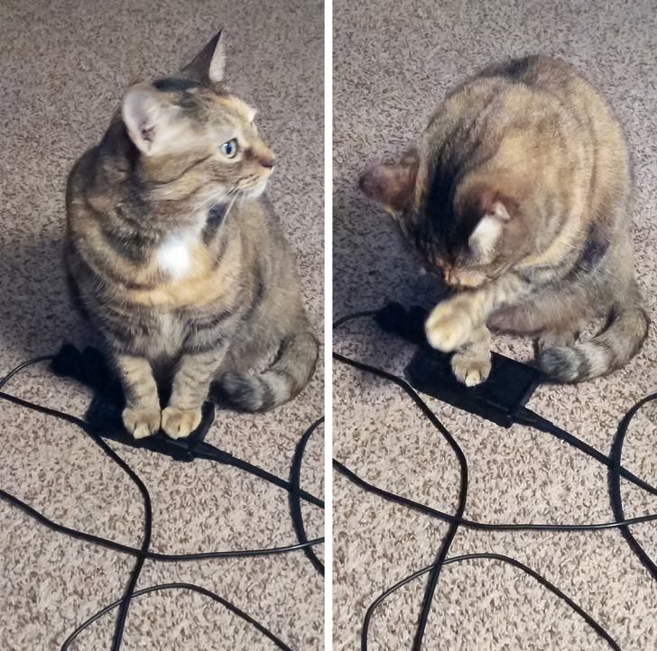 «Моя дружина побувала на шведських стайнях і помітила, що всі кішки там тримаються в місцях, де тепліше. Але, здається, цей рижик вирішив перейти на наступний рівень»