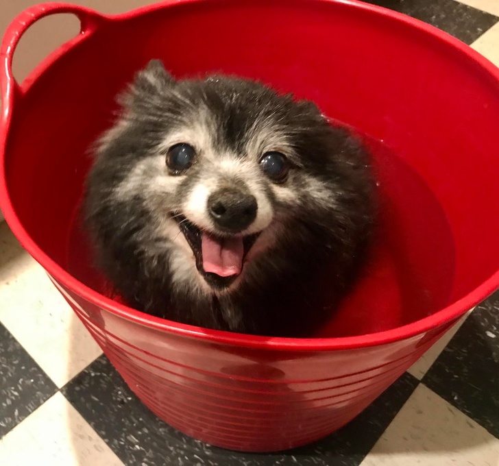 4. «Це моя мила старенька. Її мучать болі в суглобах, так що ми змушені давати їй ліки. Купання в теплій воді дуже їй допомагають»