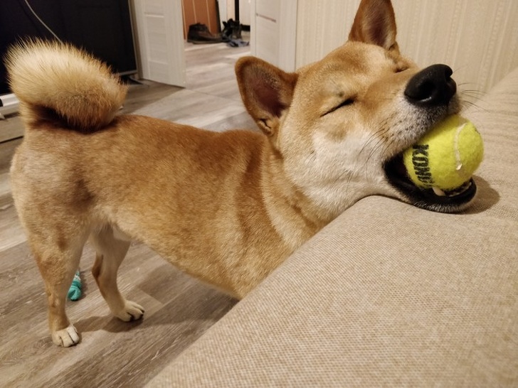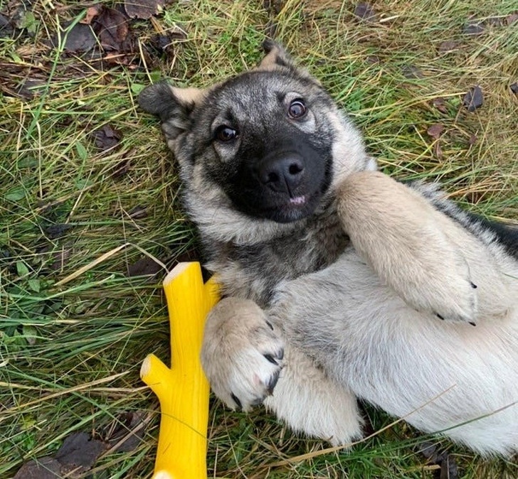 13. «Забрав його додому тиждень тому. Спочатку він боявся, а тепер він хороший хлопчик і у нього є власна (!) іграшка-пищалка»