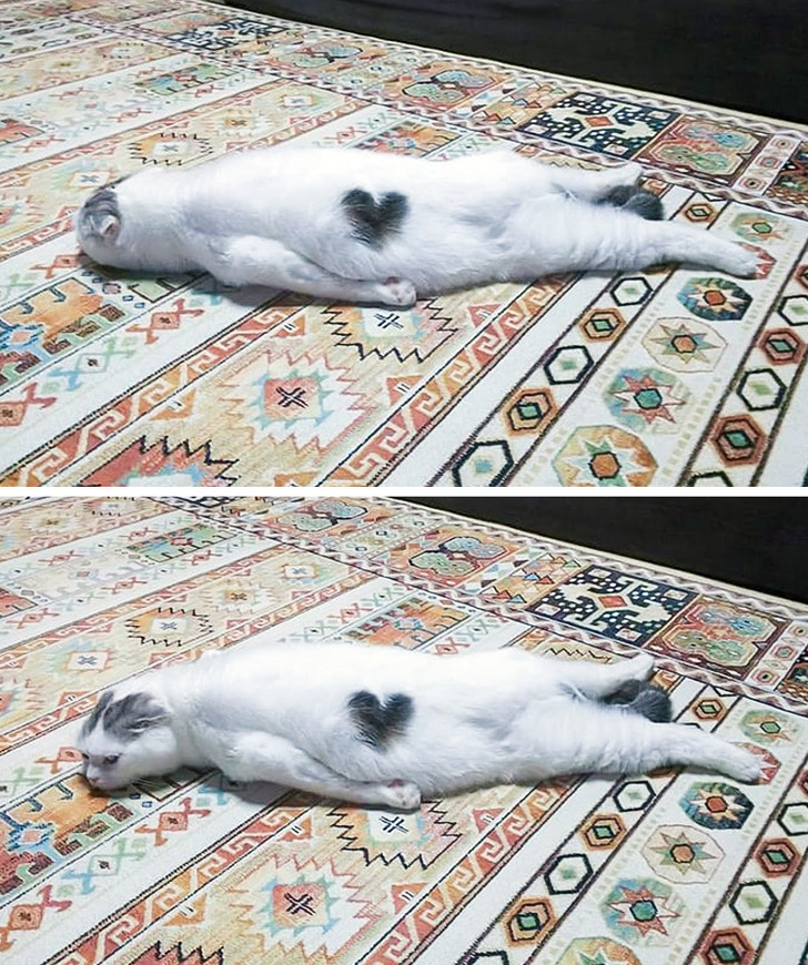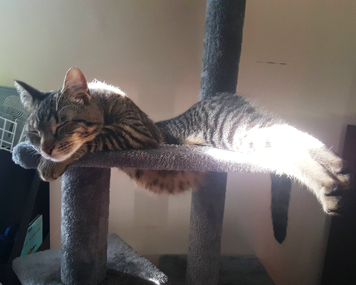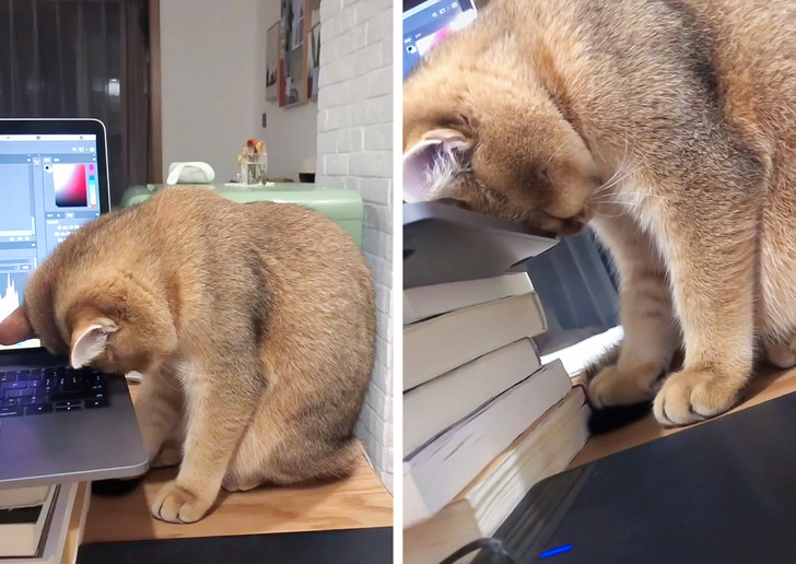 «Я працював допізна, і моя кішка заснула в такій позі»