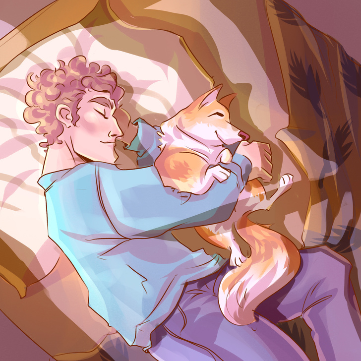 Якщо вихованець вважає за краще спати в обнімку з вами, то йому треба бачити ваше обличчя і відчувати серцебиття. Це створює у тварини додаткову впевненість у тому, що з вами все в порядку. Також ця поза забезпечує можливість швидкого переміщення в інші частини ліжка або на підлогу, якщо ви повернетеся або змініть положення тіла уві сні.