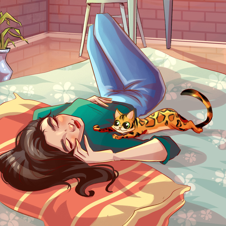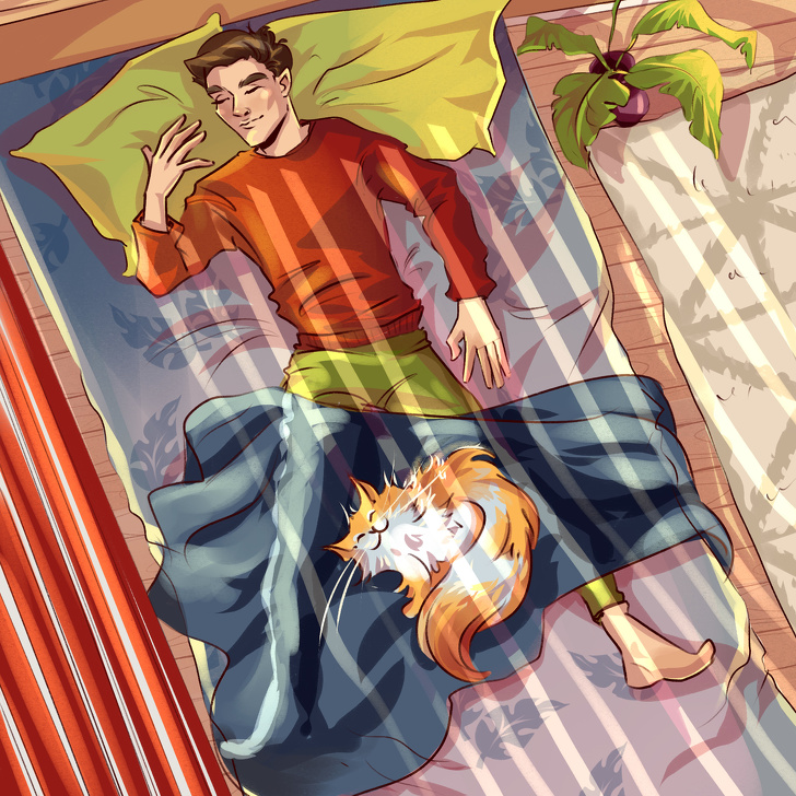 Якщо вихованець відбирає для себе всю подушку, то він шукає додаткову м'якість і комфорт під час сну. Як тільки тварина прокидається, то, як правило, починає будити вас, щоб отримати свій сніданок як можна швидше.
