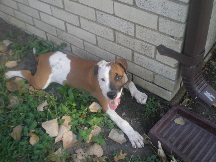 12. Пес успадкував морди своїх батьків — наполовину пітбуль, наполовину боксер