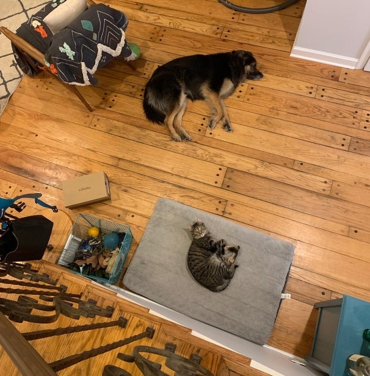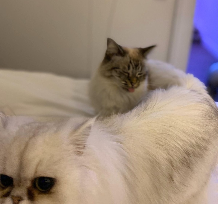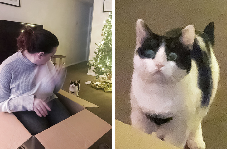 «У вітальні стояла велика коробка, і я сказала сестрі залізти в неї. Реакція кішки безцінна».