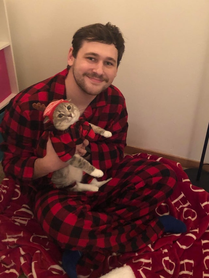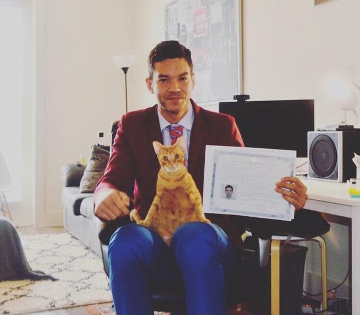 «Дуже гордий тим, що нарешті отримав громадянство США. Хочу відсвяткувати цю подію з моєю маленькою вірною подружкою, яку знайшов у себе вдома півроку тому. Вона прищепила мені любов до кішок і сьогодні вперше спробує сиру рибу».