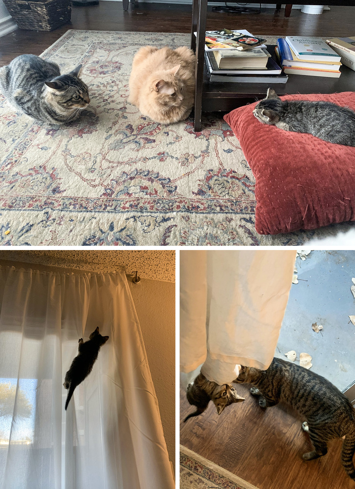 «2 моїх кота усиновили кошеня, і зараз у них важкі часи»