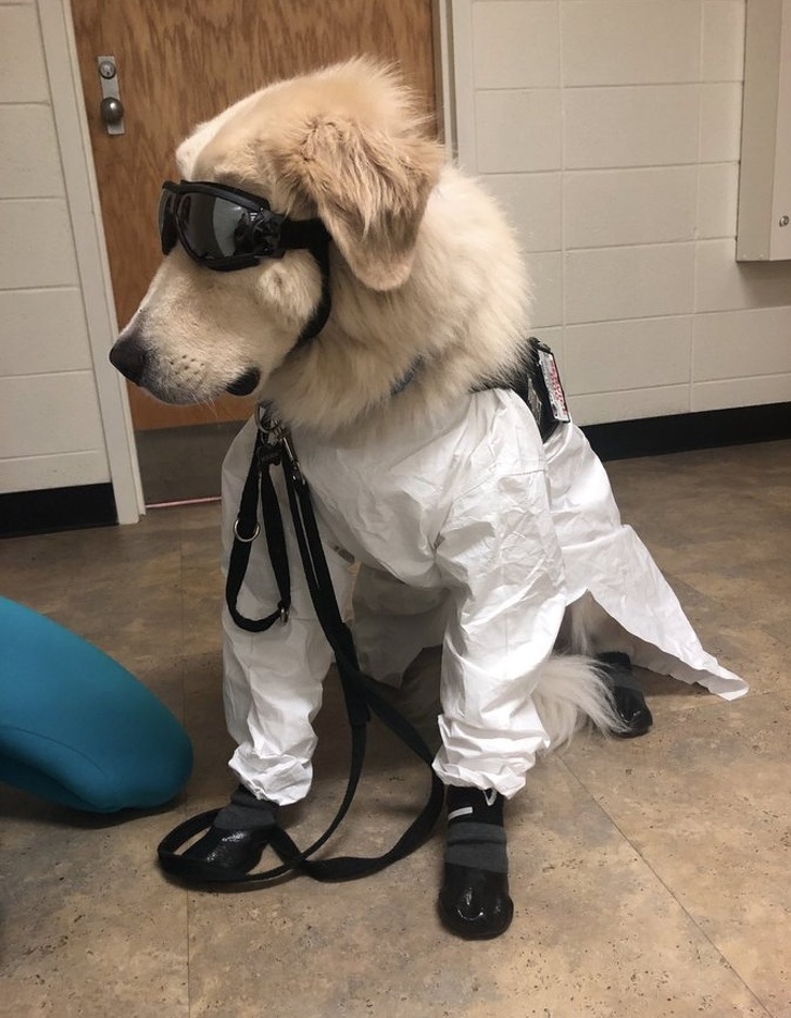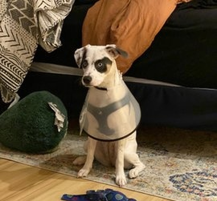 «Моя дівчинка ходила з коміром 3 тижні через травму ноги, а коли ми його зняли, то вона одягла його знову. Тому що вона любить комір, це її найкращий друг»