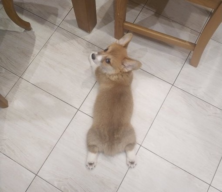 «Мій щеня не вміє лежати. Він витягає лапи тому як людина»