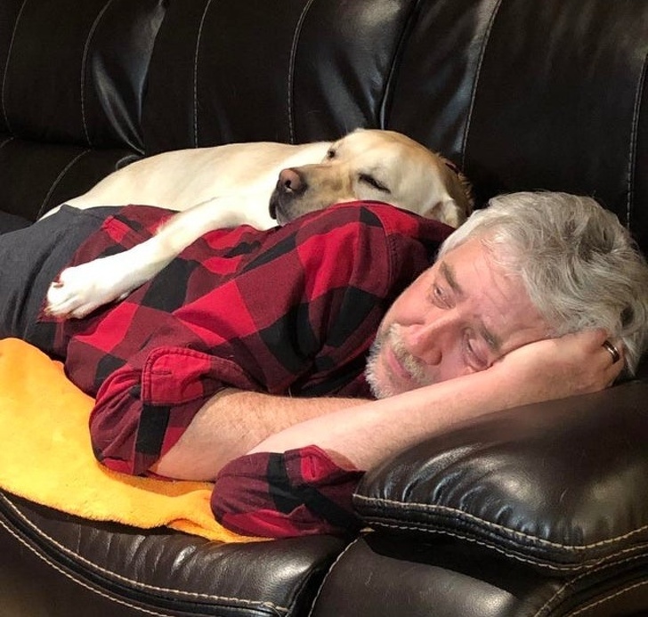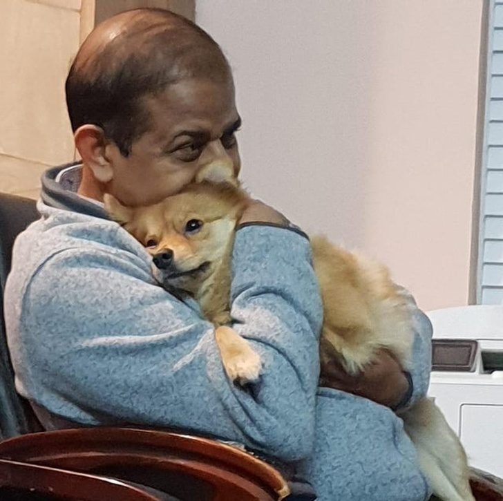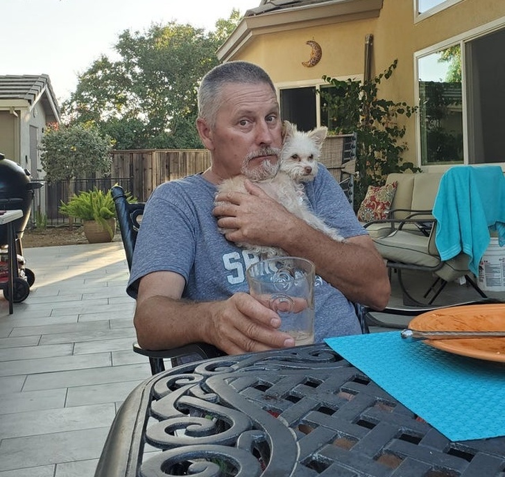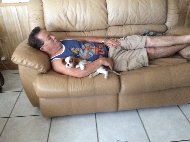 «Спочатку це було „собаці не можна спати разом з нами на ліжку“. Так тривало близько 3 днів. Роки опісля тато завжди тримає пса на колінах, бере його всюди з собою і надсилає нам ось такі селфи»