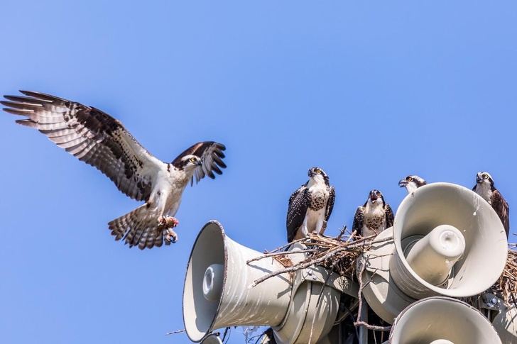 Сім'я скоп влаштувалася на верхівці гучномовця, який встановлений для оповіщення про радіаційну аварію