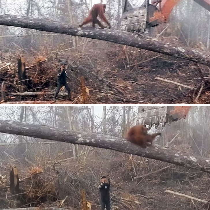 Орангутан намагається боротися з бульдозером за своє середовище проживання