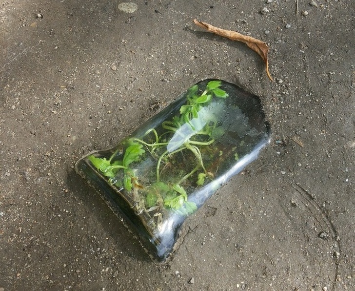 Пляшка застрягла в землі, а всередині утворилася ціла екосистема