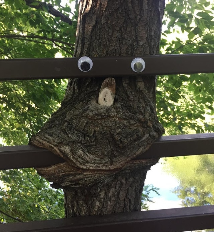 Хтось приклеїв очі дереву, яке «поїдає» міст