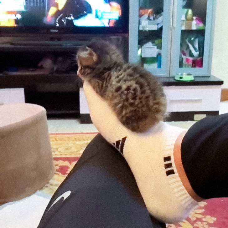 20. «Мій кіт наполягає, щоб я тримав його за лапу, поки він спить у мене на колінах»
