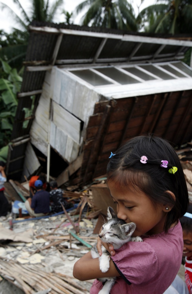 Врятована після землетрусу в Індонезії Дитиа Аю Лестери тримає свого кота.