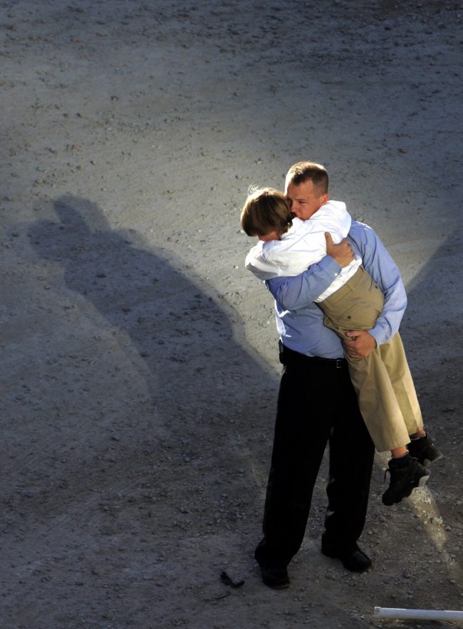 Чоловік притискає до себе хлопчика на 5-й річниці трагедії 11 вересня в Нью-Йорку.