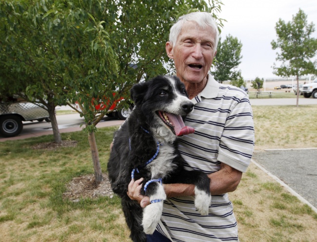Білл Янз притискає до себе свою собаку Еббі, врятовану під час пожежі.