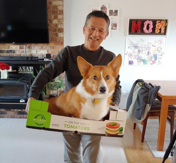 «Папа: „Я листоноша, ненавиджу собак, не хочу собак“. Також папа: „Вау, Чарлі, я можу носити його в цій коробці“»