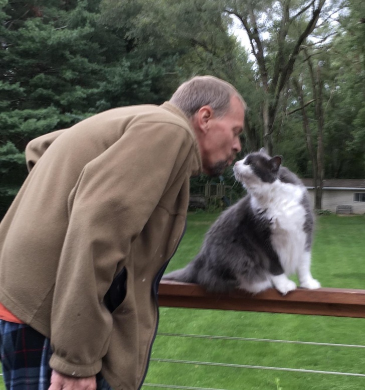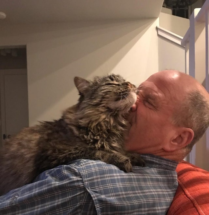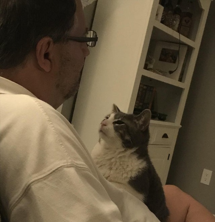 «Мій тато не хотів котів взагалі, а ми привезли додому аж двох. Через 10 років один з них дивиться на нього ось так»