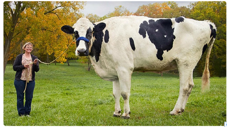 Корова-рекордсменка Книги рекордів Гіннесса вагою 1,5 т проживала в американському штаті Іллінойс. Для того щоб виміряти її точний зростання, ветеринарам навіть доводилося вставати на спеціальну драбину. До речі, її власниця Патті Хансон, натхненна розміром власної вихованки, написала дитячу книгу про пригоди гігантської корови.