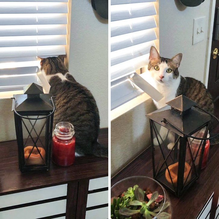 «Мій кіт зробив жалюзі свою особисту дірку для підглядання».