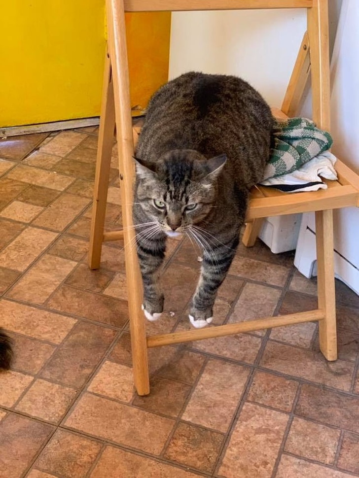 Його сім'я більше не могла піклуватися про нього, і він потрапив у притулок. Завдяки своєму чарівності і характером кіт знайшов новий будинок буквально за пару днів. І його вже посадили на дієту.