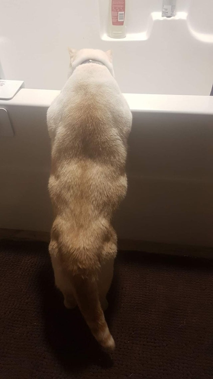 Знайомтеся, це Хал. Він справжній звір, важить близько 10 кг Як бачите, котик легко дістає до краю ванною, а адже він навіть не повністю витягнувся