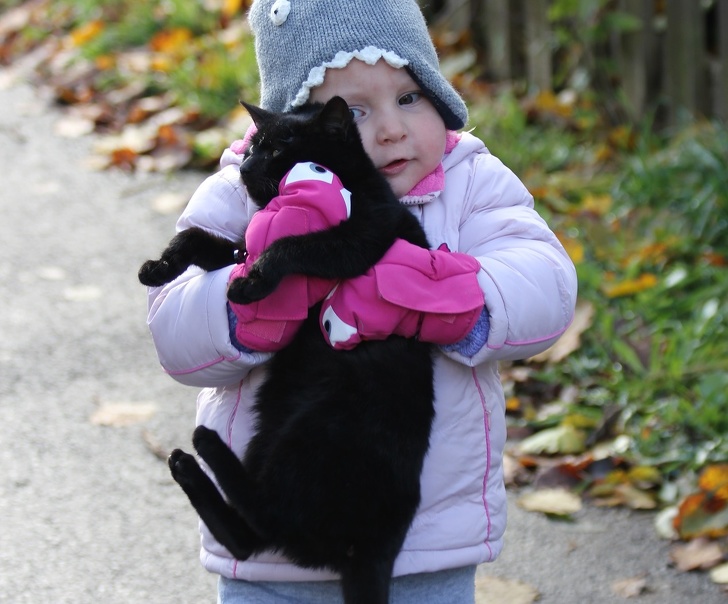 Дітей не можна залишати наодинці з кішками. Малюк може травмувати звірка. Крім того, гучні і різкі звуки лякають котів, і ті можуть стати агресивними. Якщо ж у родині з'явився маленький вихованець, завжди будьте поруч, поки з ним грають діти.