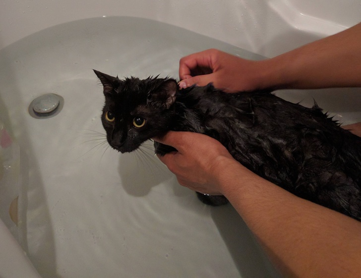 Навіть собаки часто нервують, коли їх купають. Кішки ж практично не потребують миття: вони регулярно вмиваються і чистяться самі. Якщо ж тварина сильно забруднилось, то його варто лише м'яко витерти вологим рушником. У рідкісних випадках, коли купання дійсно необхідно, постарайтеся обмежитися миттям тільки забрудненої області, а не тваринного цілком.