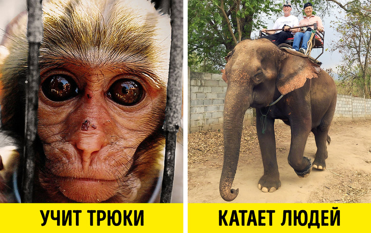 У світі так багато можливостей для розваг, що експлуатувати живих істот вже здається диким. Але ми навіть не помічаємо масштаби проблеми. Адже нам здається, що тварини отримують задоволення від спілкування з людьми: добрі слони в Таїланді катають туристів по лісах, пітони спокійно позують перед фотокамерою, а в контактному зоопарку звірі зовсім не виглядають нещасними або виснаженими.