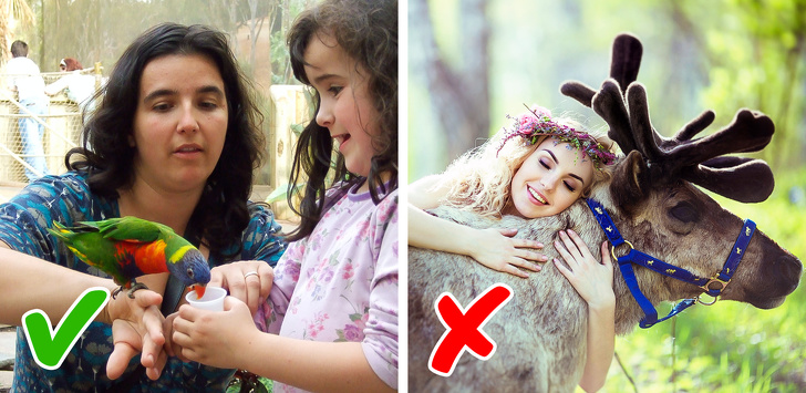 Як краще діяти: Записуйтеся в волонтерські програми по всьому світу, щоб доглядати за птахами і тваринами в національних парках і заповідниках, на час відпустки (зазвичай потрібно оплатити тільки авіаквитки). Там під наглядом фахівця можна зробити на пам'ять про працю фото і відео, наприклад як ви простягаєте папузі корм або обіймаєте маленького панденка.
