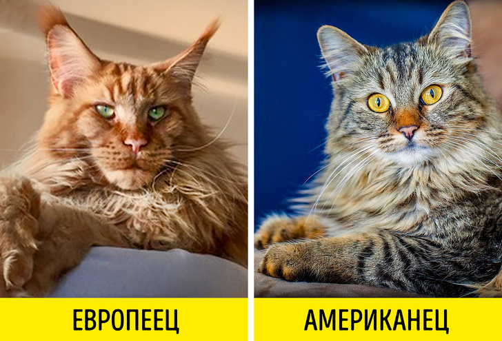 Для порівняння: безпородна кішка моїх батьків важить трохи більше 5 кг — так само як досить велика самка мейн-куна. Чому тоді коти цієї породи виглядають такими величезними на фото? По-перше, вдалий ракурс: голова тварини ближче до камери, ніж голова господаря, а тіло витягнуте у всю довжину — візуально виходить справжній гігант.