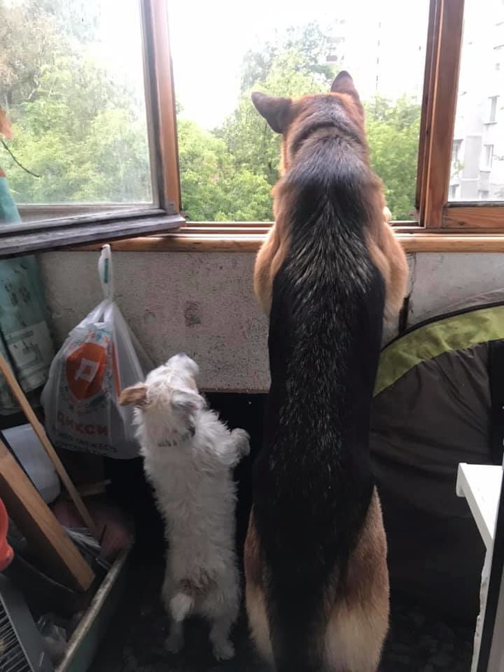 а потім зрозуміла, що якщо у нього щось потрапляє, то він зупиняється. І, уявіть собі, вона почала приносити до нього іграшку, яка застрявала, і той переставав «гуляти» по квартирі. Я потім вже ховала цю іграшку, так вона пристосувала іншу. Як так? © shapoklajk.lenusik - Мої собаки як дізнаються звук автомобіля чоловіка і відразу летять на балкон. Це завжди виглядає так.