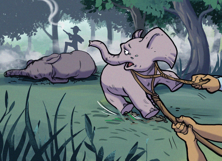 Бранцями «розваг» стають піврічний слоненята, яких крадуть у матерів в дикій природі. При викраденнях часто розставляють пастки — спеціальні ями, в які падають загнані тварини. Іноді мисливці просто нападають на жертву натовпом і пов'язують її. Матерів, які намагаються захистити слоненят, частіше всього вбивають.