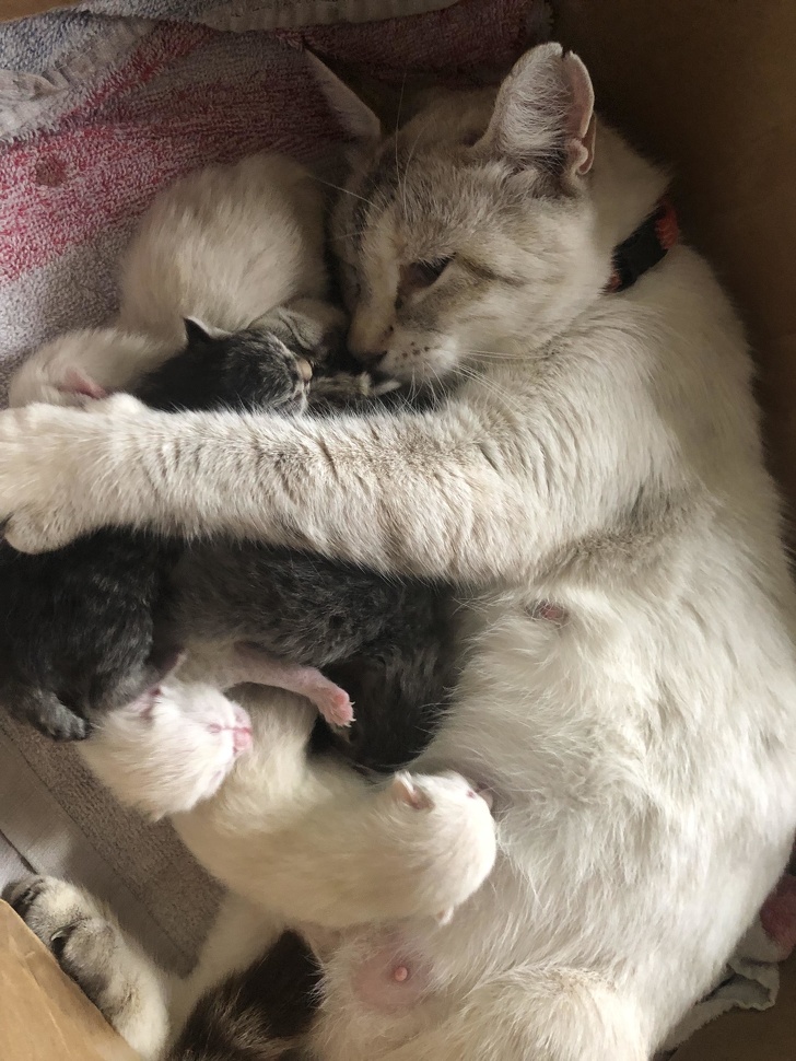 «Мій сусід забрав додому вагітну кішку. Вчора вона народила кошенят»
